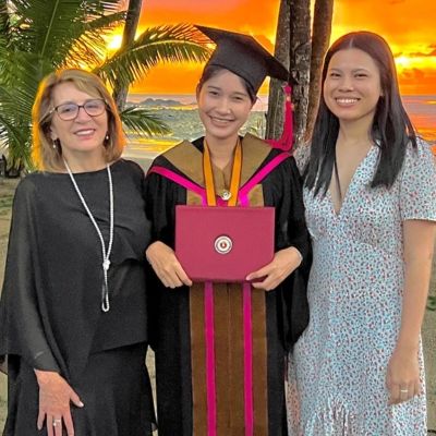 ตอนมัธยมปลาย หนูเรียนสายอังกฤษ-ฝรั่งเศส ที่โรงเรียนตะกั่วป่าเสนานุกูล พอเรียนจบก็ได้ศึกษาต่อระดับปริญญาตรีที่มหาวิทยาลัยสยาม ในสาขาวิชาภาษาอังกฤษเพื่อการสื่อสารทางธุรกิจ และสำเร็จการศึกษาเมื่อวันที่ 23 กุมภาพันธ์ พ.ศ. 2565 โดยได้รับเกียรตินิยมอันดับสอง ด้วยเกรดเฉลี่ย 3.47 ค่ะ